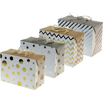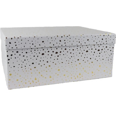Dárková krabice. Rozměry: 37,5 x 29 x 16 cm. Materiál: papír. Barva: bílá, zlatá. Tento výrobek není hračka.