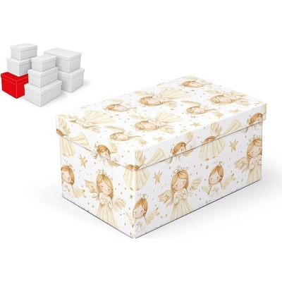 Vánoční dárková krabice o rozměrech 28 x 18 x 14 cm Vánoční krabička s motivem andílků a zlatých hvězdiček usnadní balení dárků a zároveň jim dodá krásný vzhled. Díky svému...