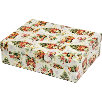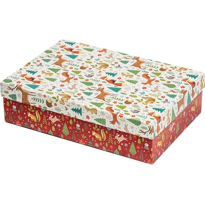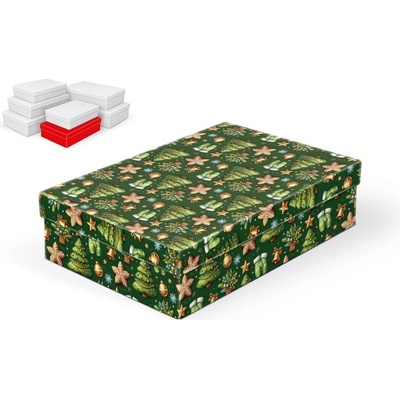 Vánoční dárková krabice o rozměrech 28 x 18 x 7 cm Vánoční dárková krabice je pokryta dekorativním papírem s vánočními motivy. Povrch krabice zdobí vzor se zelenými vánočními...