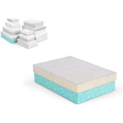 Celoroční dárková krabice o rozměrech 27,5 x 19,5 x 7,5 cm NÁHODNÝ MIX Dárková krabice v mixu pastelových barev s různými vzory, jako jsou puntíky, proužky nebo texturovaný...