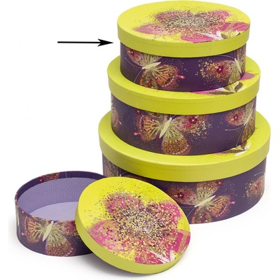 Nádherní papírová krabice ve tvaru kruhu z dílny ARGUSu. Vhodná nejen k zabalení dárků, ale také jako dekorace do bytu a odkládací prostor pro různé drobnosti v poličkách...