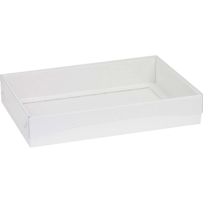 Papírovou krabici s průhledným víkem využijete na balení dárků, šátků, rukavic apod.