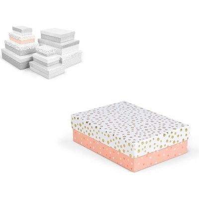 Celoroční dárková krabice o rozměrech 22 x 16 x 6,5 cm NÁHODNÝ MIX Dárková krabice v mixu pastelových barev s různými vzory, jako jsou puntíky, proužky nebo texturovaný povrch....