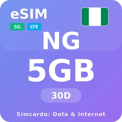 Mobilní Internet pro Nigérii s 5GB platný na 30 dní. Získejte rychlý a spolehlivý internet v Nigérii s okamžitou aktivací travel eSIM. Okamžité doručení eSIM e-mailem. Žádná...
