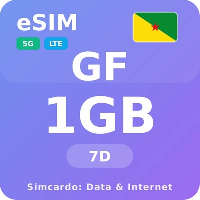 Mobilní Internet pro Francouzskou Guyanu s 1GB platný na 7 dní. Získejte rychlý a spolehlivý internet v Francouzské Guyaně s okamžitou aktivací travel eSIM. Okamžité doručení...