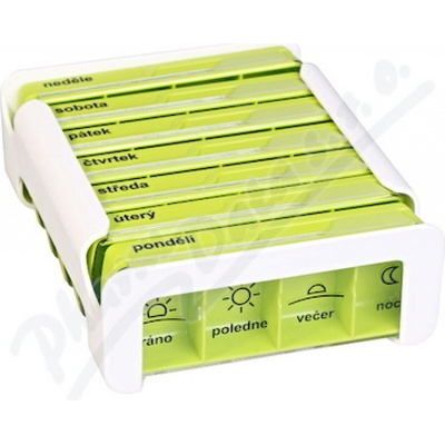 Sedmidenní dávkovač slouží ke spolehlivému a přehlednému uspořádání a dávkování léků i potravinových doplňků. Je značen symbolem zobrazujícím denní dobu (vycházející slunce) - Ráno / (měsíc) - Večer. Části dne jsou barevně odlišené pro lepší přehlednost. Každá část dne...