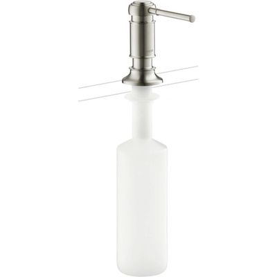 Dávkovač saponátu Nerezová ocel + PVD povrch Maximální výška pracovní desky: 42 mm Standardní instalační otvor: Ø 35 mm Dvě možnosti připojení: nádržka na láhev nebo flexibilní...