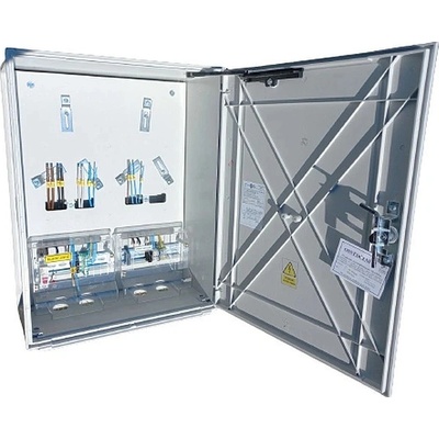 Elektroměrový rozvaděč pro jeden dvoutarifní třífázový elektroměr pro měření do 63A. Hlavní jistič není v základním osazení rozvaděče, obsahuje jen jistič HDO a vypínač...
