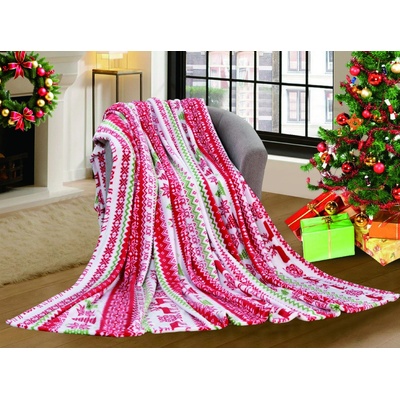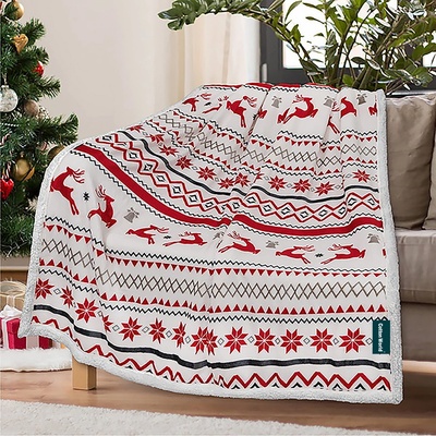 Textilomanie Vánoční bílá beránková deka z mikroplyše RETRO CHRISTMAS 160x200