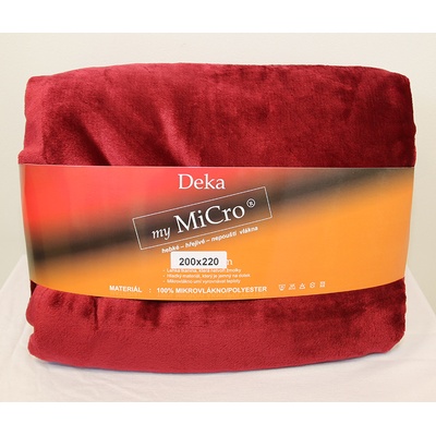 Deka mikroplyš super soft bordó Rozměry: 220x200 cm Deka mikroplyš je příjemná, měkká a hebká s vysokou hustotou chloupků. Deka je vyrobena z micropolar fleece a je obšitá...
