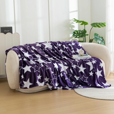 Textilomanie Vánoční Mikroplyš beránková deka HVĚZDY fialová 200x220