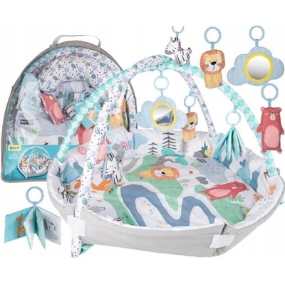 Plyšová vzdělávací hrací deka s hrazdičkou pro děti 0+ SAFARI je kombinací bezpečného prostoru pro hraní navíc s hračkami, které povzbuzují dítě k aktivitě a natahují se na ně....