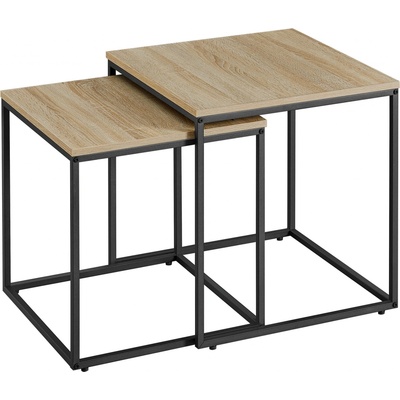 Materiál Dřevotříska: Dub sonoma Kov: Černá Rozměry menšího stolku Délka: 45 cm Šířka: 45 cm Výška: 45,5 cm Nosnost: 15 kg Rozměry většího stolku Délka: 50 cm Šířka: 50...