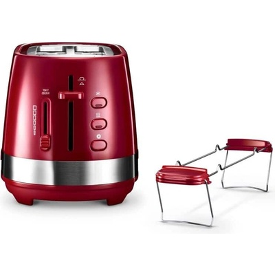 na 2 topinky, regulace opékání, rozmrazování, tlačítko okamžitého ukončení, vysoký zdvih a světelná signalizace, součástí vyjímatelná miska na drobky a nástavec na rozpékání pečiva, příkon 900 W, materiál nerez a plast, barva červená a šedá (CTOC2103.R)