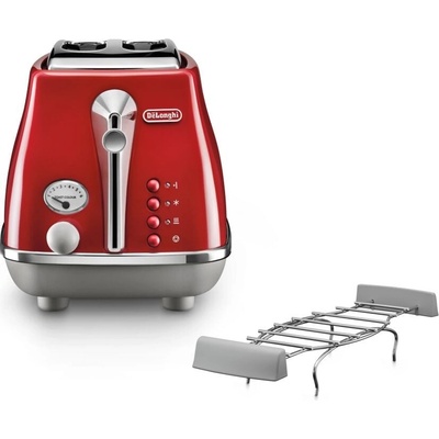 Topinkovač DeLonghi Icona Capitals CTOC 2103.R je unikátním retro kouskem s mřížkou na opékání, vyjímatelným táckem na drobky a 6 stupni teploty opékání.