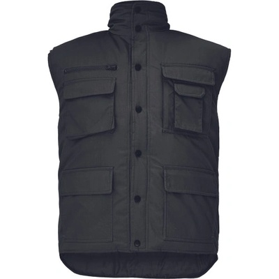 zateplená pánská zimní vesta se stojáčkem; prodloužený díl na zádech; zapínání na plastové druky; 2 velké přední multifunkční kapsy; 2 náprsní mutlifunkční kaspy. Svrchní...
