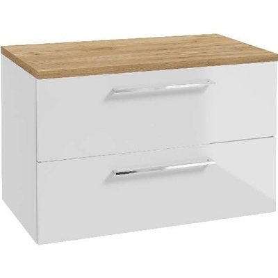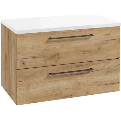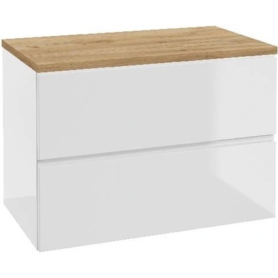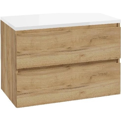 kielle Skříňka včetně desky pod umyvadlo 80x55x46 cm, lesklá bílá/zlatý dub - 50027S840