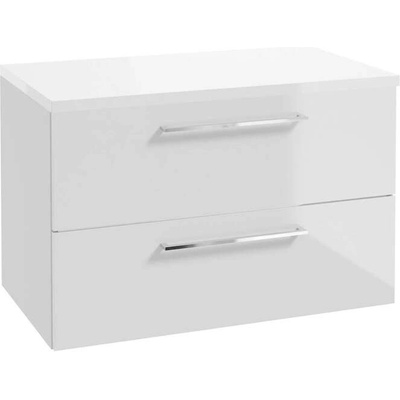 Umyvadlová skříňka včetně desky bez výřezu - rozměry skříňky: šířka 800 mm, hloubka 460 mm - materiál skříňky: dřevotříska - barva: lesklá bílá - celá skříňka je lakovaná s...