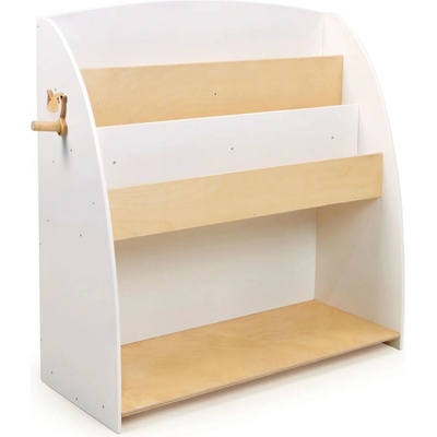 Praktická knihovna vyrobená z překližky v přírodní a bílé barvě s věšákem na boku na zavěšení kabátku nebo pytlíku s hračkami. Ideální pro vystavení a uložení knih nebo...
