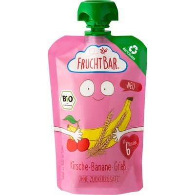 Pyré třešně banán krupice - Doba dodání cca 10 dní Bio ovocné pyré 100g s ovocem a krupicí, od 6 měsíců bez přidaného cukru recyklovatelné obaly Složení: Banánové pyré**...