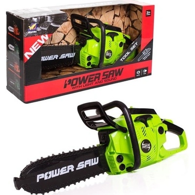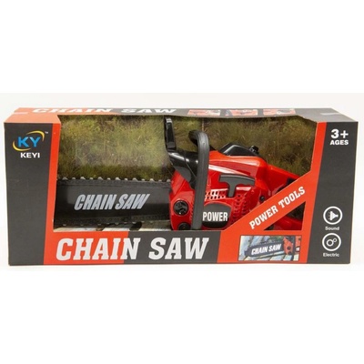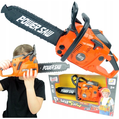 Plastová funkční motorová pila pro děti. Řetěz se otáčí. Hračka na baterie, se světlem a zvukem. Baleno v openboxu. Při práci vydává realistické zvuky a světělné efekty jako skutečná pila při ořezávání stromů a větví. Nastartováním a přidáním plynu se roztočí řetěz, na...