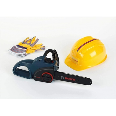 Dětská motorová řetězová pila BOSCH a dětské ochranné pomůcky KLEIN 8253 Plastová dětská řetězová pila s logem BOSCH modrá Pila nemá reálnou funkci Světelná a zvuková...