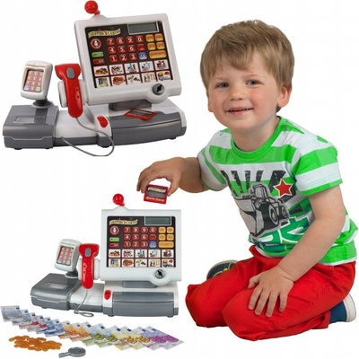 Nakupuje Vaše dítě rádo? Elektronická pokladna umožní zábavu v nakupování. Hračka má dotykovou obrazovku (panel) se skutečnou kalkulačkou, tlačítka s obrázky produktů, které lze zakoupit a LCD displej. Pokladna je také vybavena otevíratelnou pokladní zásuvkou, skenerem...