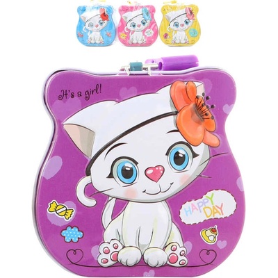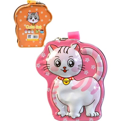 Pěkná kovová pokladnička s plastickým, reliéfním 3D motivem kočičky, ve čtyřech barevných variantách, pro všechny malé šetřílky. Otevírání v horní části. Součástí balení je...
