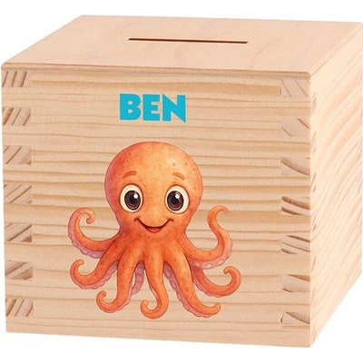 Kupte výhodně ČistéDřevo Dětská dřevěná pokladnička - Hlubiny oceánu Zvolte zvířátko: Chobotnice z kategorie Kategorie | Personalizované dárky | Personalizované pokladničky se...