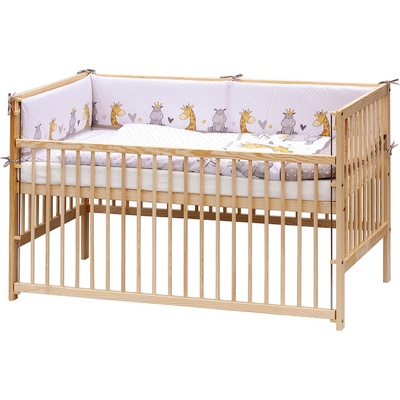 Dětská postýlka s kompletní soupravou povlečení a doplňků Fera - béžová Komplet obsahuje 1. Dětská dřevěná postýlka 140x70 cm - přírodní, masiv buk, 3-vyndavací příčky, 5-polo...