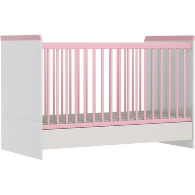 Moderní variabilní dětská postýlka s čely vyrobenými z laminované dřevotřísky a s nožičkami, bočnicemi a s roštem z masivu. - Přestavitelná na postel JUNIOR - Povrchová úprava...