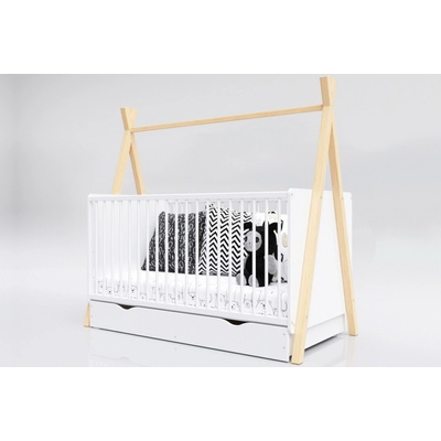 Bílá dětská postýlka Teepee o rozměru 140x70 cm. Postýlka je ve skandinávském stylu, který je v dětském pokoji velmi populární. Postýlka je k dispozici ve variantách s úložným...
