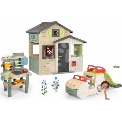 Smoby Set domeček pro zahradníka a prolézačka auto se skluzavkou Garden House Life rozšiřitelný s pískovištěm v kufru