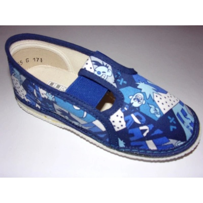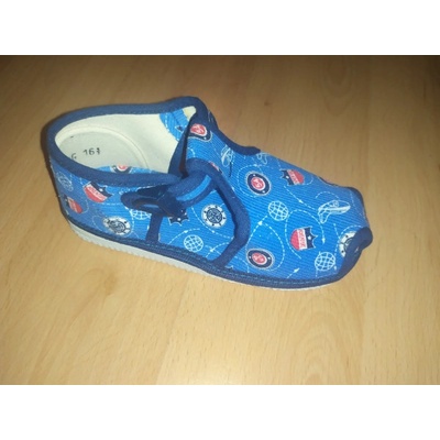 Dětská celoroční rekreační volnočasová a přezůvková obuv na suchý zip. Boty jsou vyrobeny z textilního materiálu. Vnitřní část obuvi je rovněž z textilního materiálu. Stélka je...