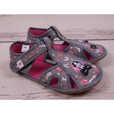 Ef barefoot papučky 386 Wednesday - otevřené Materiál: látka Barva: šedá s potiskem Podrážka: 2 mm tenká, gumová, flexibilní Zapínání: suchý zip Stélka: textilní,...