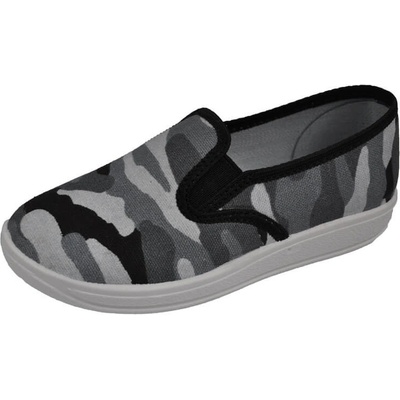 Plátěnky bačkory tenisky slip on Skarpol Aga 027-32 šedé maskáčové s koženou stélkou