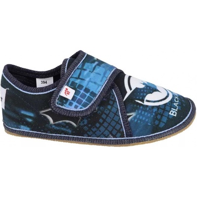 Chlapecké bačkory Peon MI/013 JD v šedo-modré barvě s pavoukem na pavučině. Šedá, poměrně ohebná a neklouzající podrážka, která nedělá šmouhy a má ze spod podešve otvory pro...