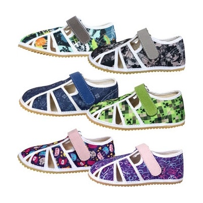 Textilní polootevřené bačkůrky se zapínáním na suchý zip. S vyjímatelnou koženou stélkou. Provětrávané do podešve, pro lepší odvod potu z obuvi. Certifikát ZDRAVÁ STOPA -...