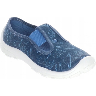 Textilní chlapecké bačkůrky se zapínáním na suchý zip. Výhodou je měkká stélka a ohebná podešev. Střední střih - vhodné pro štíhlé a střední nožičky bez vysokého nártu...