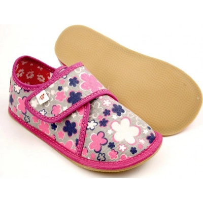 Růžové dívčí balerínky Peon Květinky MI/001 GR s mašličkou. Díky jednoduchému zapínání na suchý zip jsou ideální volbou jako školní přezůvka nebo domácí obuv. Snadno se...