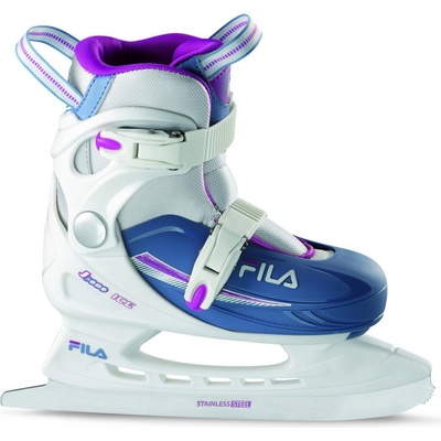 Nastavitelné dětské lední brusle s nerezovou čepelí, pohodlnou sametovou podšívkou a bezpečným zapínáním pro snadné nasazení a stabilitu. Dětské lední brusle Fila J-One G Ice HR...