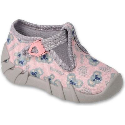 Dětské textilní papučky s vkládací koženou stélkou, pevným opatkem a zapínáním na přezku. Lehká a ohebná podešev pro snadnou chůzi našich nejmenších. Upozornění Zdravotnický...