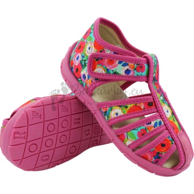 Dětská letní rekreační nebo přezůvková obuv se zapínáním na suchý zip. Boty jsou vyrobeny z textilního materiálu. Vnitřní část obuvi je z textilního materiálu. Podešev je...
