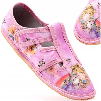 Dětská domácí obuv na suchý zip. Bačkory jsou velmi pohodlné, podešev je lehká, ohebná a provětraná. Střih M III - střední. Materiál: svršek - textil, podšívka - textil,...