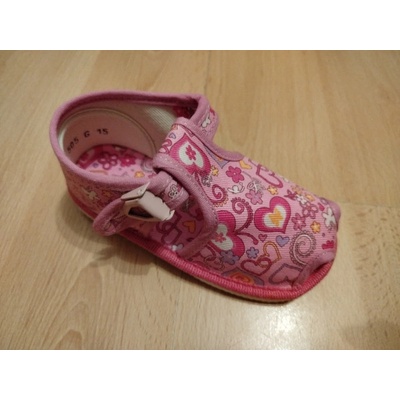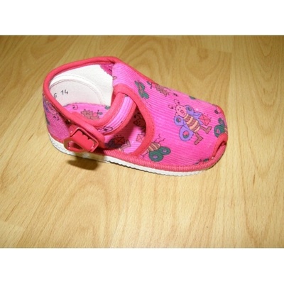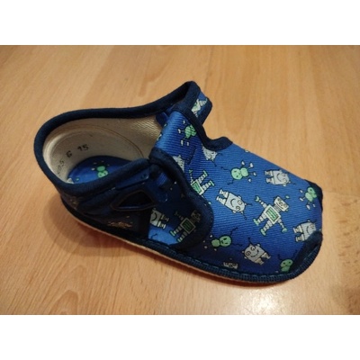 Domácí přezůvky, se zapínáním na suchý zip. Lehké s ohebnou podešví, výhodou je kožená, vyjímatelná, anatomicky tvarovaná stélka a zpevněný opatek. Podešev vhodná i pro pobyt...