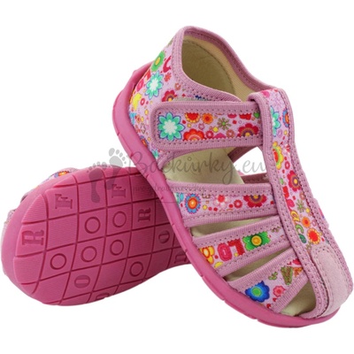 Textilní bačkory - sandále na suchý zip, maximálně ohebné, kožená stélka, nastavitelné pásky přes nárt. Lehké, vzdušné. Střední střih Materiál: svršek a podšívka - textil +...