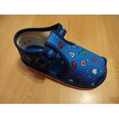 Dětská celoroční rekreační volnočasová a přezůvková obuv na suchý zip. Boty jsou vyrobeny z textilního materiálu. Vnitřní část obuvi je rovněž z textilního materiálu. Stélka...