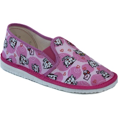 Dětské nazouvací bačkory Playshoes Kočka v růžové barvě Pohodlí, samostatnost a radost – vše v jednom páru bačkůrek Dětské bačkůrky na suchý zip s motivem roztomilé kočičky...