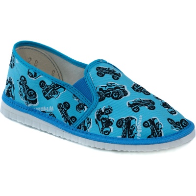 Chlapecké textilní bačkory se zapínáním na suchý zip. Jsou lehké, ohebné a provětrávané do podešve s vyjímatelnou koženou stélkou. Certifikát ZDRAVÁ STOPA - obdoba české...