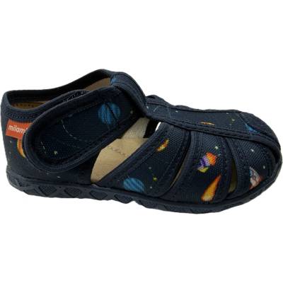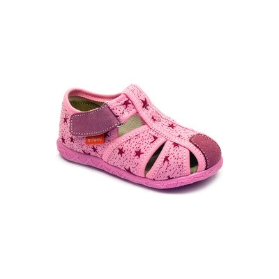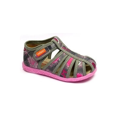 Dívčí sandálové bačkory Milami se zapínáním na suchý zip. Lehké s ohebnou podešví, výhodou je kožená, anatomicky tvarovaná stélka a zpevněný opatek. Podešev vhodná i pro pobyt...